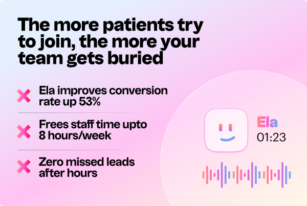 Ela flips this. Appointments, confirmations, reminders, no-show nudges, renewals, billing clarifications — all happen instantly. Day or night.